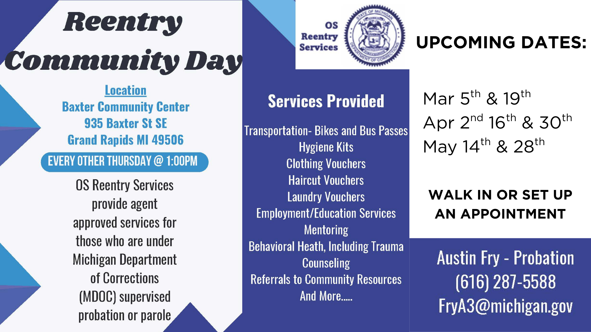 Contact: Austin Fry – Probation Resource Navigator: Kent County