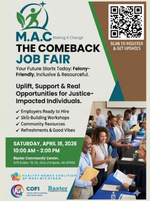 Join us for a felony-friendly job fair hosted by Healthy Homes Coalition’s COFI (Community Organizing and Family Issues). This free event will feature: