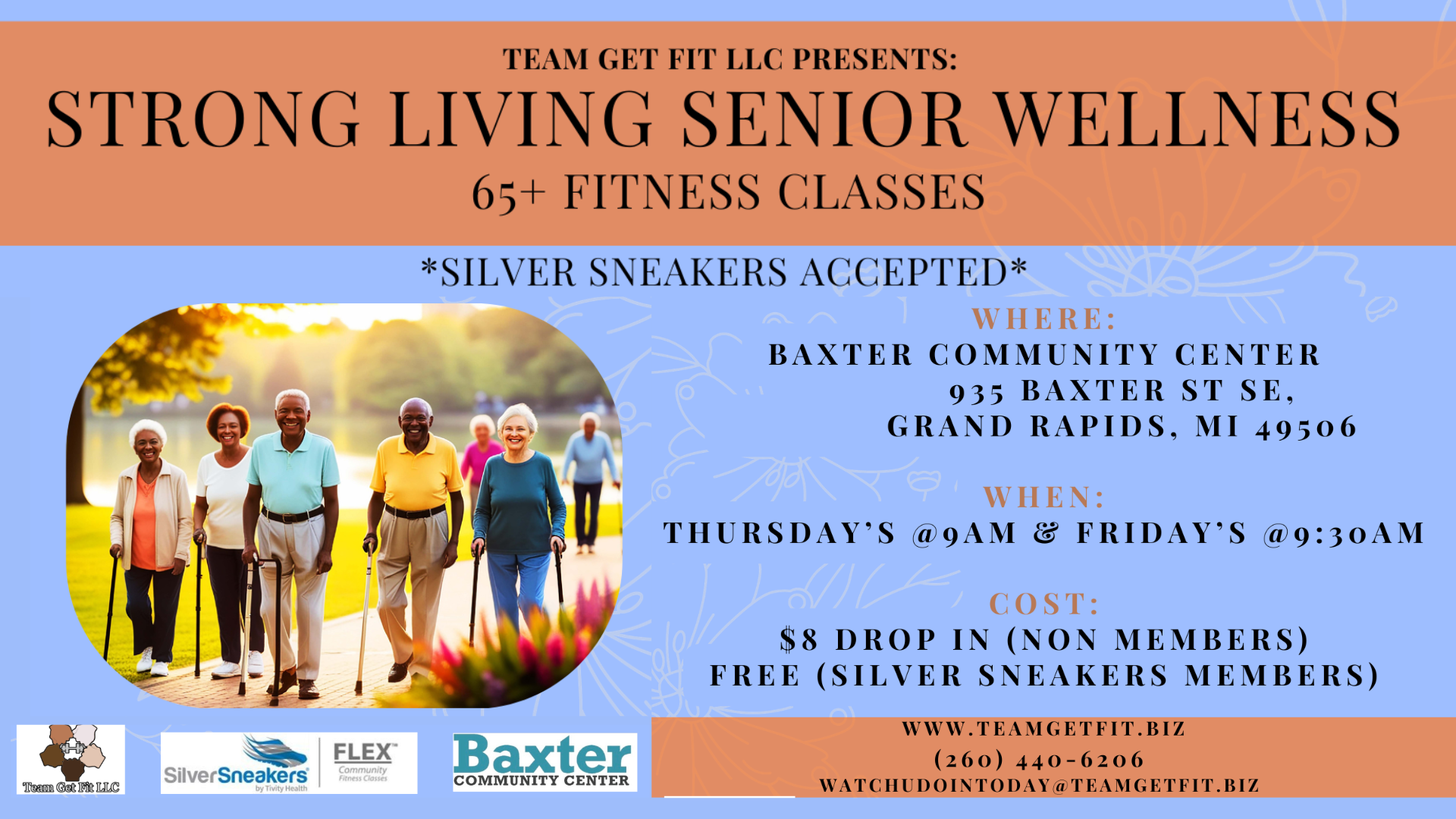 Join Coach Jesse with Team Get Fit LLC, for Strong Living Senior Wellness fitness classes for seniors here at Baxter!